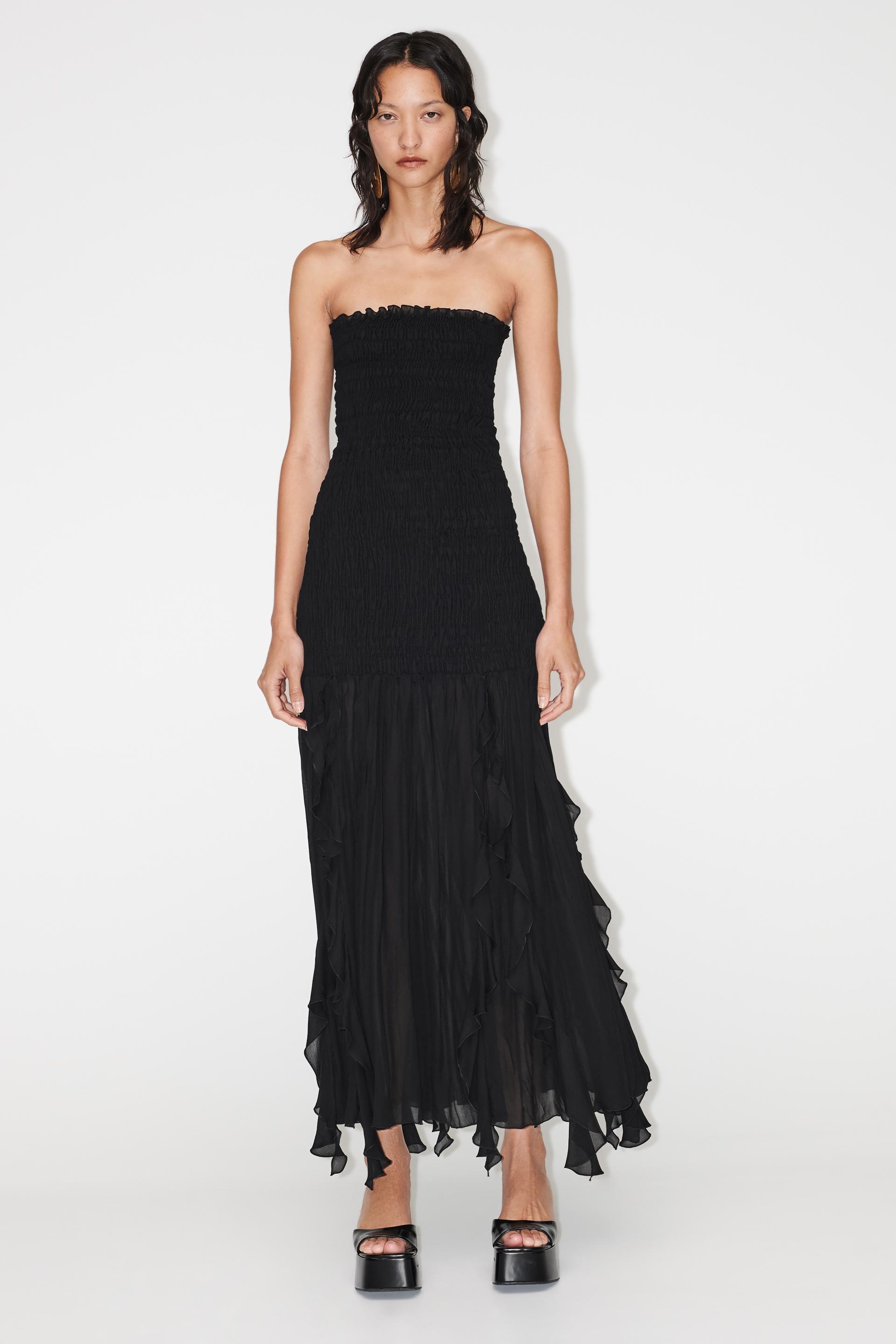 Schulterfreies Drapiertes Kleid Schwarz Zara Deutschland Germany